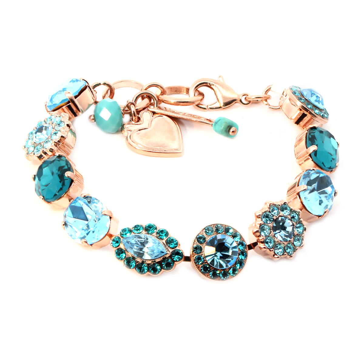 Enchantment Bracelets feature a variety of stones such as Swarovski Crystals: Aquamarine (202), Light Turquoise (263), Blue Zircon (229).