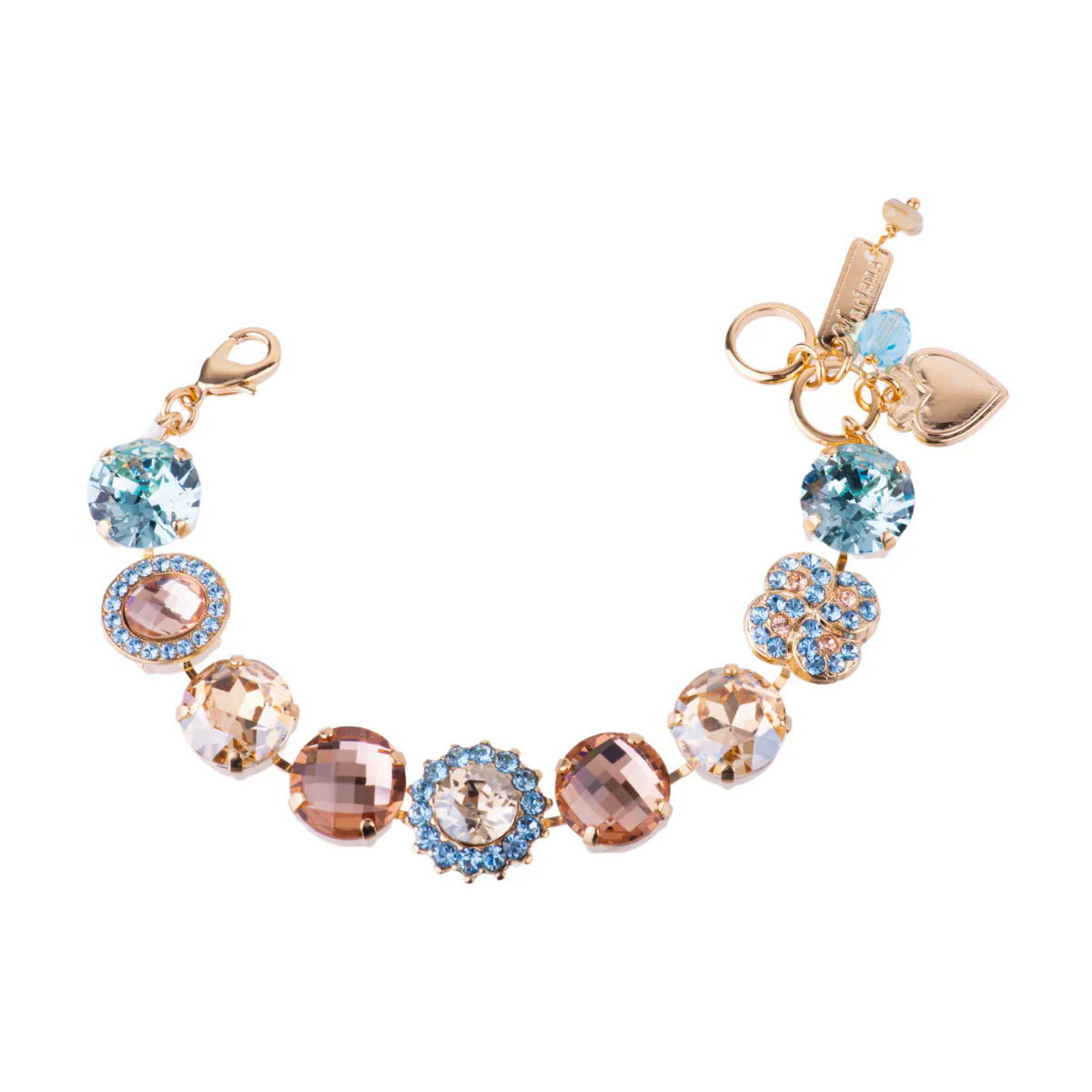 My First Toast bracelets feature exquisite Swarovski crystals: Aquamarine (202), Golden Shadow (216) and Champagne (362).
