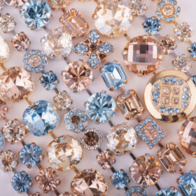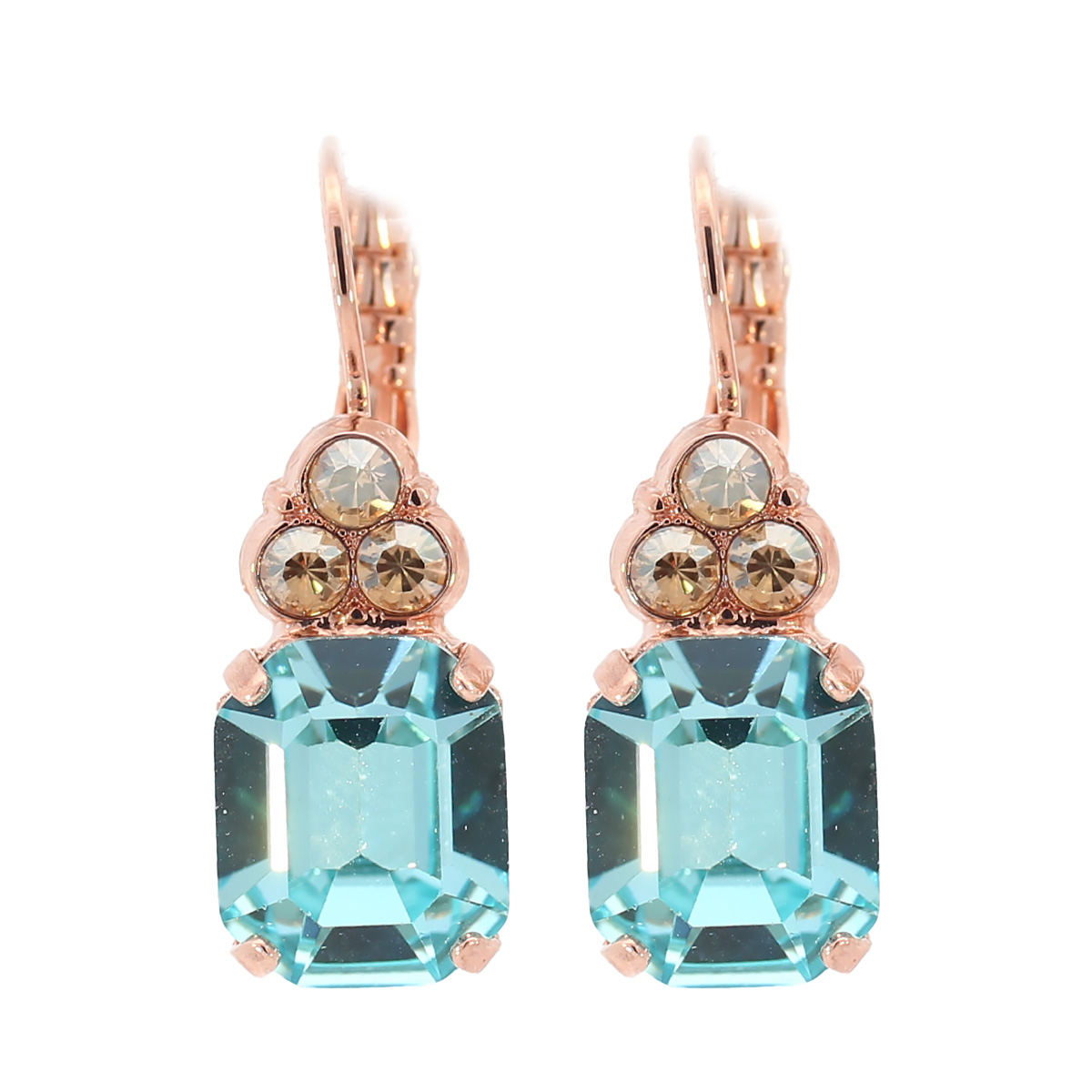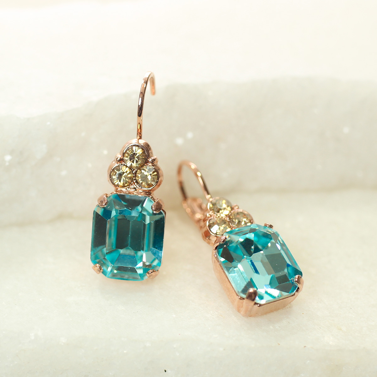My First Toast Earrings feature exquisite Swarovski crystals: Aquamarine (202), Golden Shadow (216) and Champagne (362). Easy to wear French Hook.
