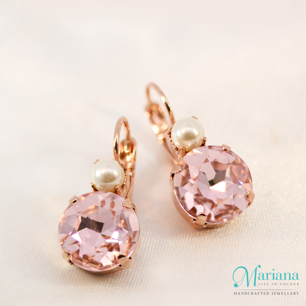 My Treasures earrings feature exquisite Swarovski crystals and pearls. Some with hand cut gemstones and layered in 18ct Rose Gold or Silver (Rhodium).