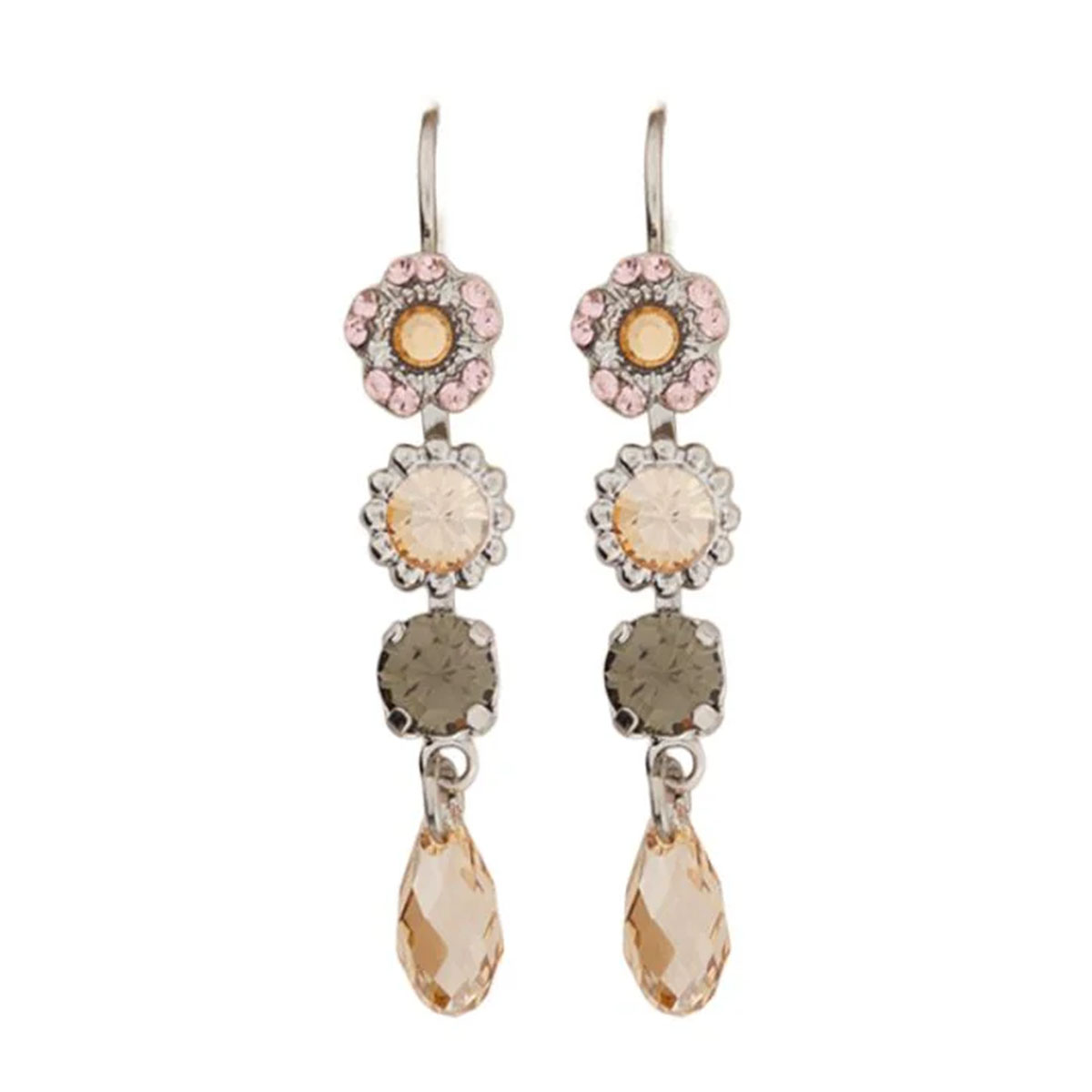 Champagne Kisses Earrings feature a variety of stones such as Swarovski Crystals: Golden Shadow (216), Black Diamond (215) and Vintage Rose (319).