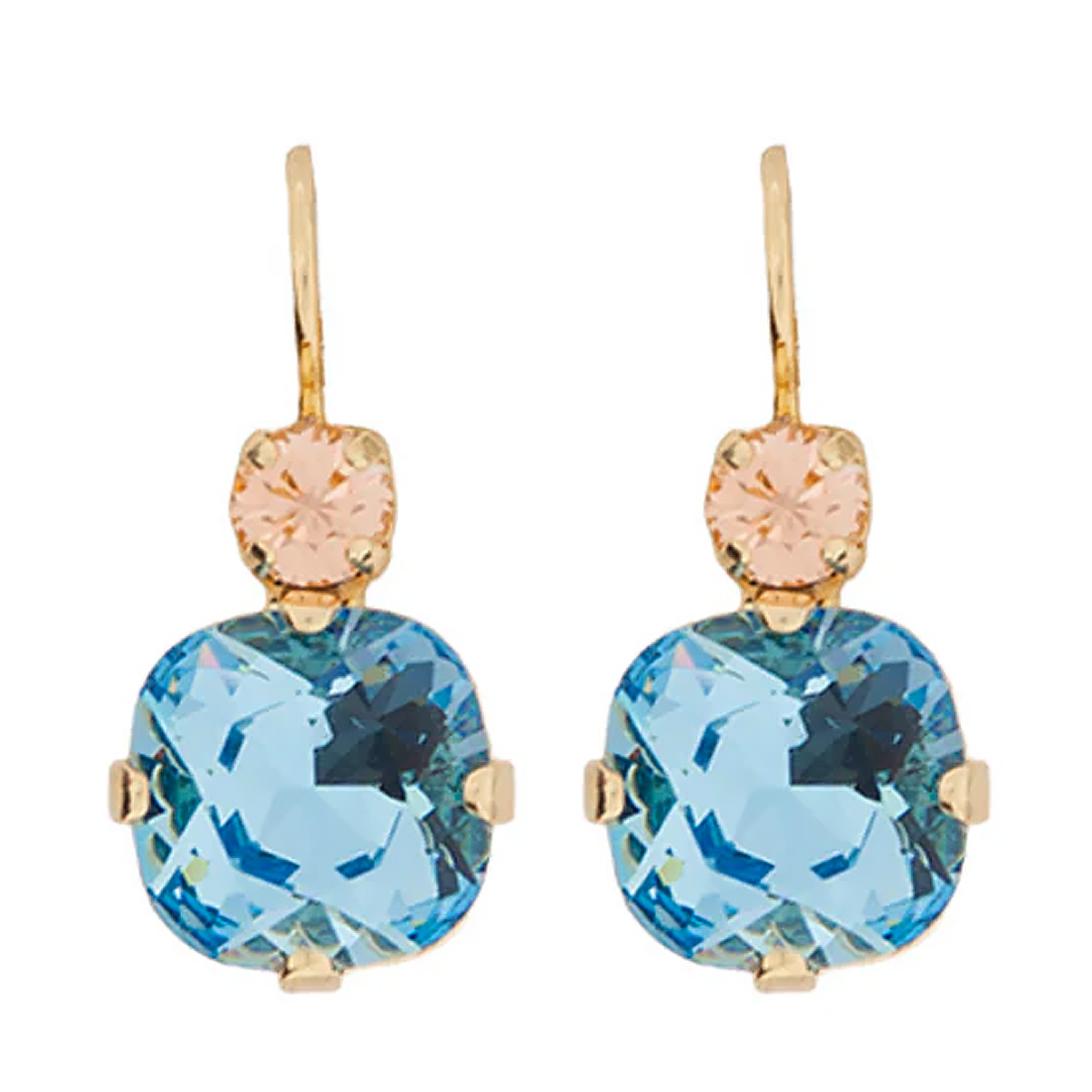 First Toast Earrings feature a variety of stones such as Swarovski Crystals: Aquamarine (202), Golden Shadow (216) and Champagne (362).