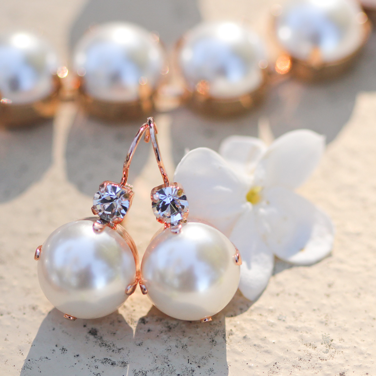 My Treasures earrings feature exquisite Swarovski crystals and pearls. Some with hand cut gemstones and layered in 18ct Rose Gold or Silver (Rhodium).